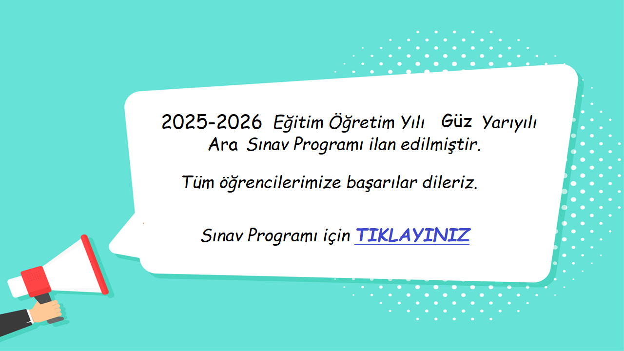 2025-2026 Eğitim Öğretim Yılı Güz Yarıyılı Ara Sınav Takvimi Son Güncelleme : 27.10.2025 13:34 Okunma Sayısı : 144
